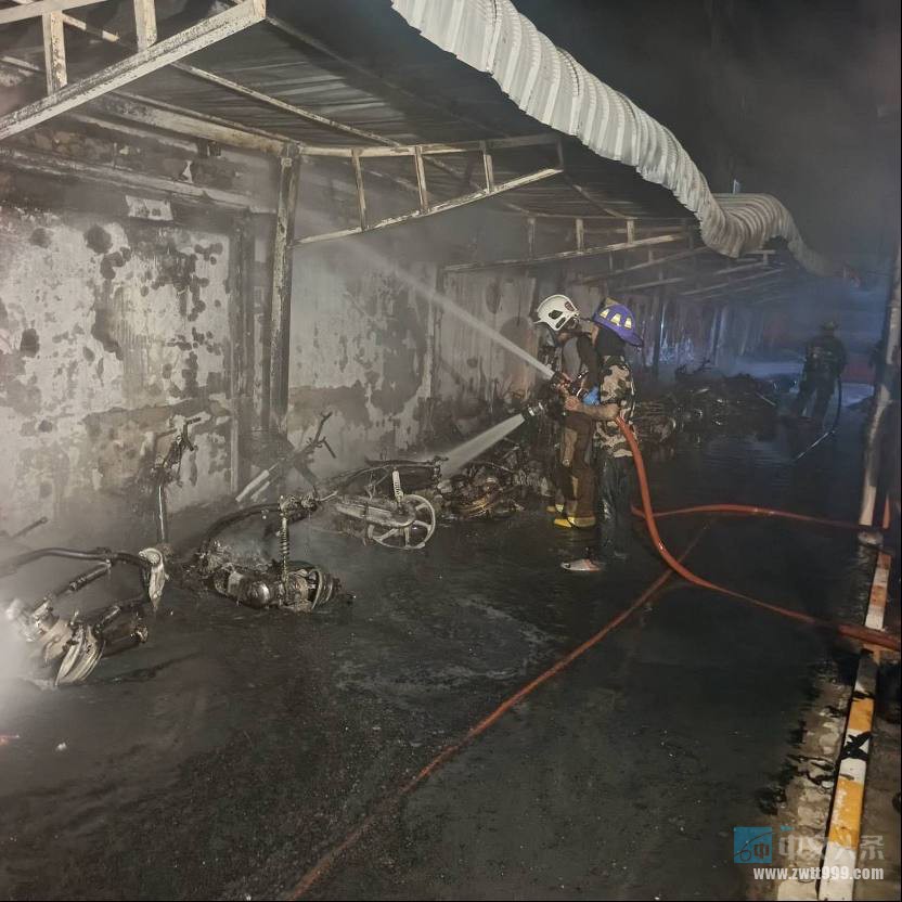 曼谷豪宅停车场突发火灾 35辆车一夜烧毁