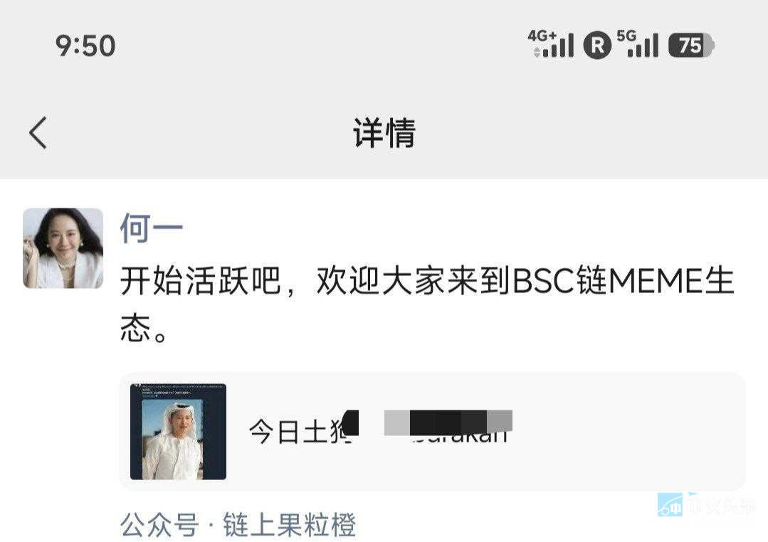 币安 何一微信账号疑似被盗,发布 Meme 币相关