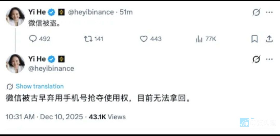 12 月 10 日,Binance 团队工作人员发布提醒,Binance 联创何一微信账号疑似被盗,发布Meme 币相关信息。请用户以官方通知为准,切勿轻信任何非官方消息,注意防范诈骗风险。 ...