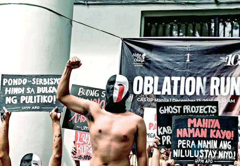 | 菲律宾国立大学马尼拉校区约百名学生12月12日重启“裸奔传统”,赤裸上身戴面罩、高举标语,在校园内激情行进! 他们齐声高喊:“淹没、压垮、掠夺——人民要公义!”直指洪灾背后政府贪腐、决策混乱、工程失职和公款侵蚀! 组织方强调:洪灾不是单纯天灾,是人祸!用身体抗议,就是要提醒社会:贪腐不除,人民绝不沉默! 这不是哗众取宠,而是最直接的愤怒!菲律宾年轻人用裸奔喊出心声:要公义,要问责! |