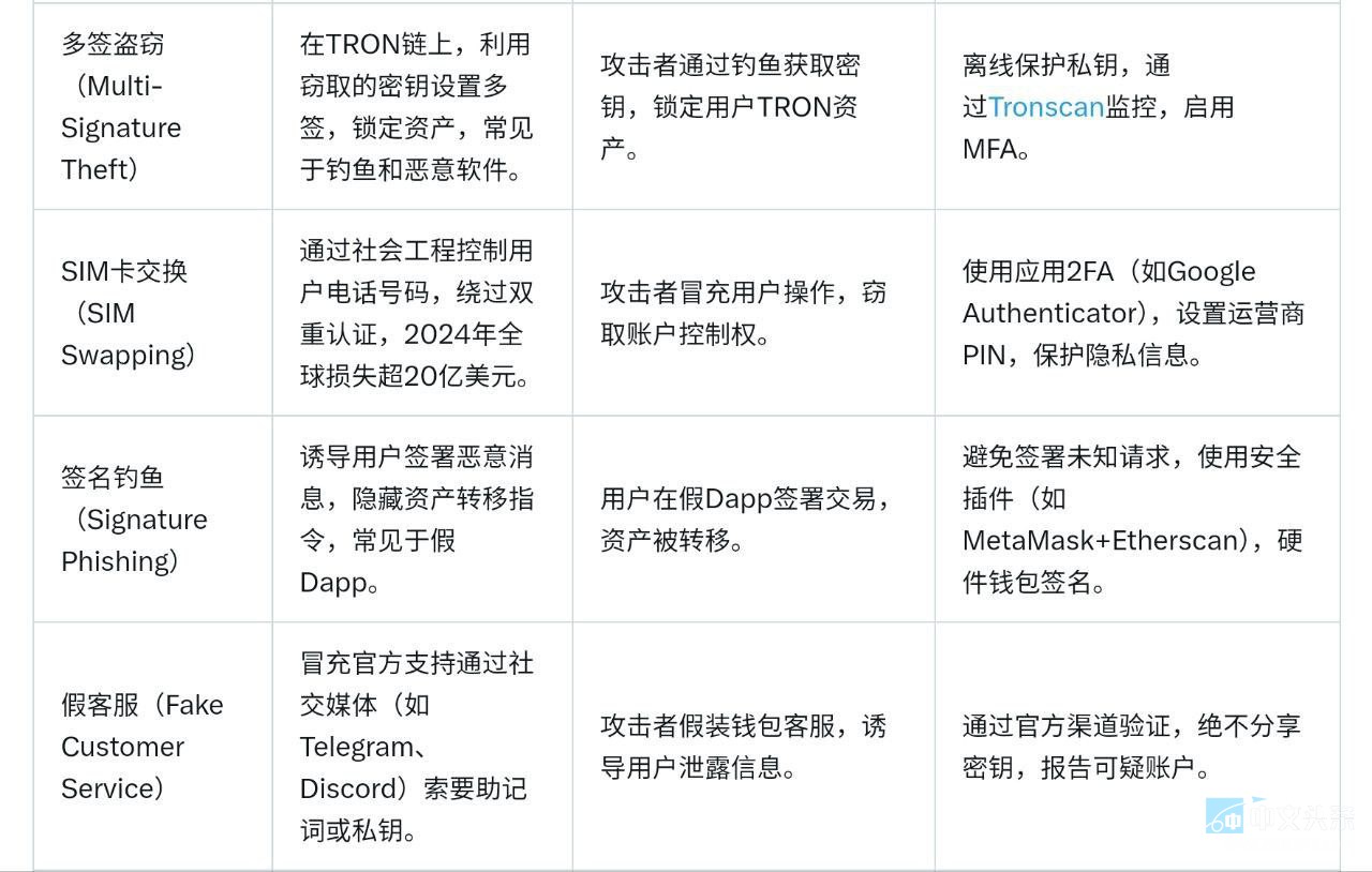 社会工程:冒充客服索要信息,或通过“打粉”和“杀鱼”的话术吸引并诈骗受害者。保护私钥和助记词,勿与任何人分享。